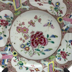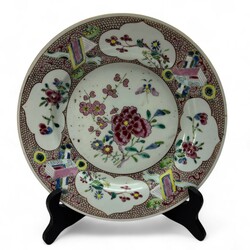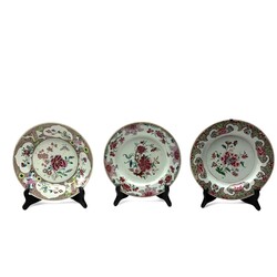 | Kavel | 18. Drie 18e eeuwse famille rose borden |