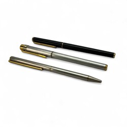| Omschrijving | Lot van drie pennen: een Must de Cartier vulpen met 18 karaats (750/1000) geelgouden punt, een Mont Blanc vulpen en een Dupont balpen |