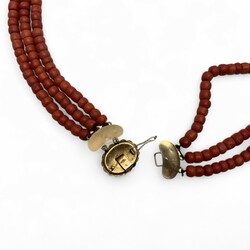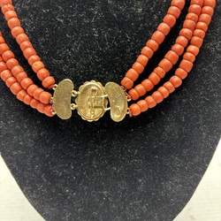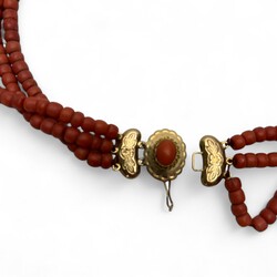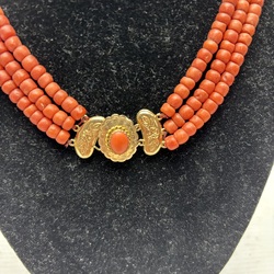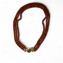 | Kavel | 74. Drierijig bloedkoralen halssnoer met gouden slot |