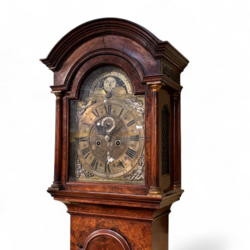 | Omschrijving | Amsterdams staand horloge in noten kast, met seconde-, minuut-, uur-, dag-, datum- en maanaanduiding, de gegraveerde messing wijzerplaat met verzilverde cijferring waarop het signatuur van de maker Jan Goebels, tweede helft 18e eeuw |