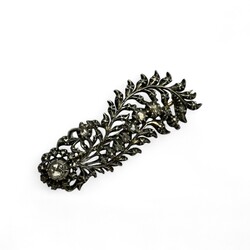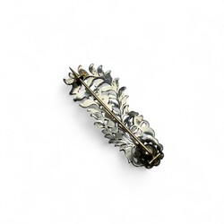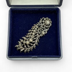 | Omschrijving | Een antieke tweede gehalte (835/10000 zilveren veerbroche met acht roosgeslepen diamant. |