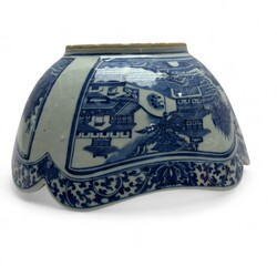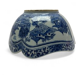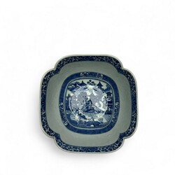 | Omschrijving | Een antiek Chinees porseleinen saladebak. Blauw/wit met rondom en binnenin drie cartouches met pagodes in Oosters landschap. Laat 18e eeuws. ca 1780. |
