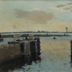 | Omschrijving | Schilderij, olieverf op doek. "Sluizen Terhorne", gesigneerd Egnatius Ydema (Wymbritseradiel 1876 – Voorburg 1937). Herkomst: vermoedelijk Christie’s Amsterdam, Pictures, Watercolours and Drawings, 21 januari 1998, lot 256 (als Enkhuizen). |