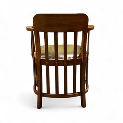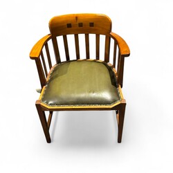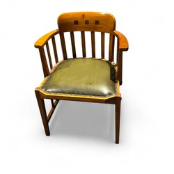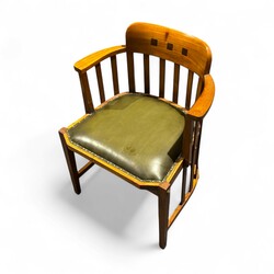 | Omschrijving | Een 20e eeuwse cederhouten bureaustoel, Globe Wernicke, met gebogen rugleuning met spijlen en groen lederen zitting. |