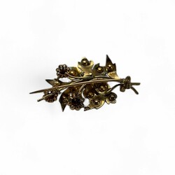 | Omschrijving | 14 karaats gouden bloemenbroche gezet met roosgeslepen diamanten, in groen fluwelen doosje |