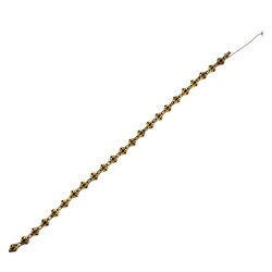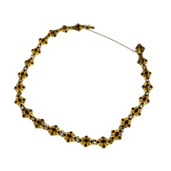 | Omschrijving | 14 karaats gouden bootjescollier, de ruitvormige filigrain schakels bezet met gefacetteerde granaten, circa 1900 |