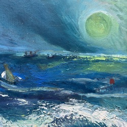 | Omschrijving | Schilderij, olieverf op doek. Schepen op zee. Rechtsonder gesigneerd Jaap Bouhuijs (Arnhem 1902 – Haarlem 1983). |