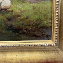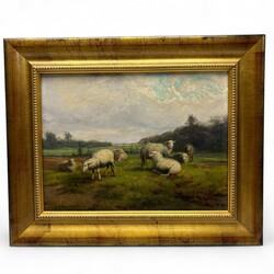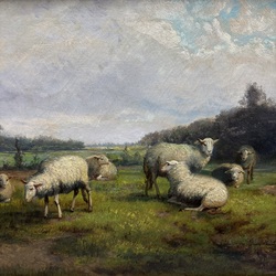 | Omschrijving | Jean-Baptiste van Leemputten (1831-1924), schapen in de weide, olieverf op doek, rechtsonder gesigneerd |