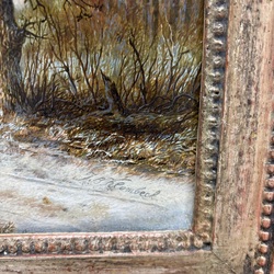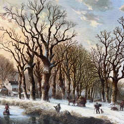 | Omschrijving | Schilderij, olieverf op doek. Winterlandschap, rechtsonder gesigneerd Johann Bernard Klombeck (Kleef 1815-1893). |