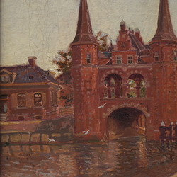 | Omschrijving | Schilderij, olieverf op doek. "Waterpoort, Sneek". Linksonder gesigneerd Johannes Elsinga (Wommels 1893 - Leeuwarden 1969). In Gehring lijst. |