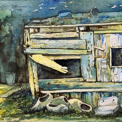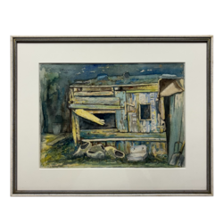 | Omschrijving | Aquarel op papier, voorstelling van het kippenhok van Durk Feenstra. Linksboven gesigneerd Jopie Huisman (Workum 1922 - Groningen 2000), gedateerd 1963. Herkomst: door de vorige eigenaar rechtstreeks verkregen van de schilder. Datering vermoedelijk van latere datum. |