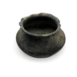 | Omschrijving | Een antieke kogelpot met bandversiering |