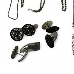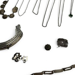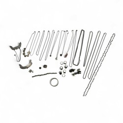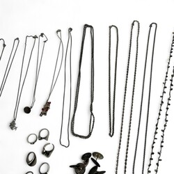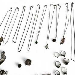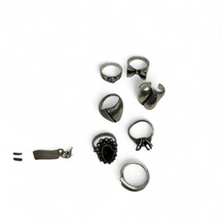 | Omschrijving | Lot divers zilver, waaronder twee tweede gehalte (835/10000 beursbeugels, een servetring en diverse damesringen. |