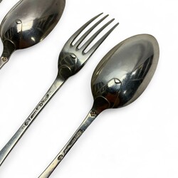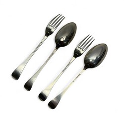 | Omschrijving | Lot van twee antieke 18e eeuwse eerste gehalte (934/1000) zilveren vorken, model Haags Lof. Mr. Johannes Selling, werkzaam te Amsterdam van 1763 tot 1802. Jaarletter V en Q (1780 & 1775). |