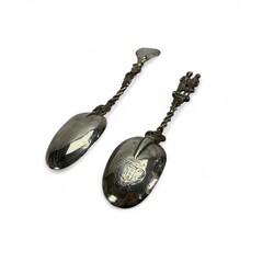 | Kavel | 95. Twee 18e-eeuwse zilveren geboortelepels |