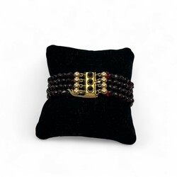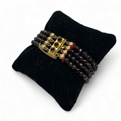 | Kavel | 187. Vierstrengs granaten armband met gouden sluiting |