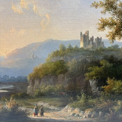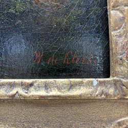 | Omschrijving | Schilderij, olieverf op doek. Figuren in een landschap met op de achtergrond een ruïne. Rechtsonder gesigneerd Willem de Klerk (Dordrecht 1800 – 1876). In ornamentenlijst. |
