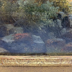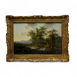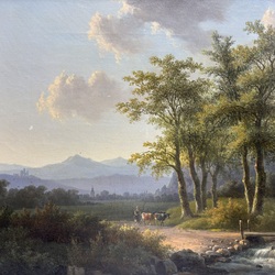 | Omschrijving | Schilderij, olieverf op doek. Landschap met rivier, figuren en bergen op de achtergrond. Linksonder gesigneerd Willem de Klerk (Dordrecht 1800 – 1876 ). In ornamentenlijst. |