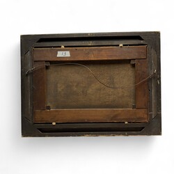 | Conditie | Redelijke staat, lichte inschildering, indruk spieraam zichtbaar aan voorzijde, met name linksboven. Enkele beschadigingen aan rand gipslijst |