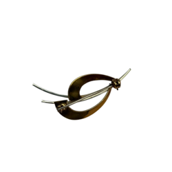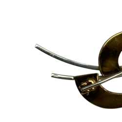 | Omschrijving | 14 karaats wit- en geelgouden broche: abstracte vorm, daarbij: vergulde eerste gehalte zilveren broche gezet met drie pareltjes |