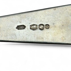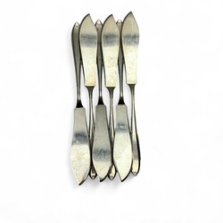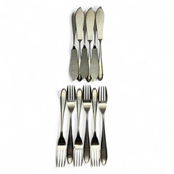 | Omschrijving | Zesdelig tweede gehalte zilveren visbestek, puntfilet, meester W. Hooijkaas, Schoonhoven, jaarletter 1942 |