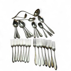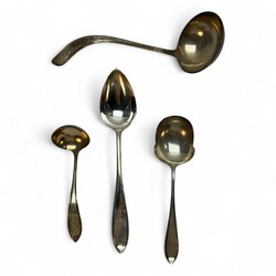 | Omschrijving | Zevenpersoons tweede gehalte zilveren bestekgedeelte, puntfilet, bestaande uit zeven grote en kleine dinercouverts, soeplepel, juslepel, aardappellepel en groentelepel, totaal 32 stuks, meesterteken Driessen, Schoonhoven, jaarletter 1942, verso voorzien van monogram 'MO' |