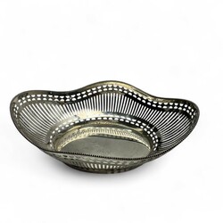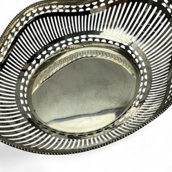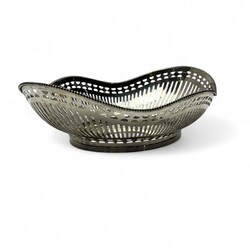 zilveren broodmand versierd met ajourwerk en parelrand, C.`wever,Schoonhoven