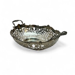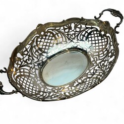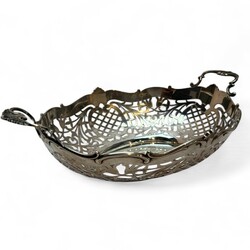 | Kavel | 89. Zilveren broodmand met zaagwerk en grepen |