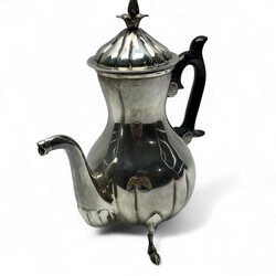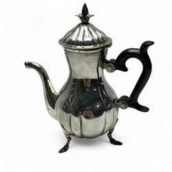 | Omschrijving | 1e gehalte zilveren koffiekan met geplooide vormen, het deksel bekroond door een bloemknop, het heft van gezwart hout, staand op drie bokkenpootjes, meesterteken Victor Azzopardi, Malta, jaarletter ‘9a’ verwijzend naar 1982-heden |