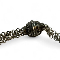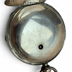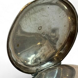 | Omschrijving | Zilveren zakhorloge met sleutelopwinding en met zilveren chatelaine voorzien van 3 signetten |