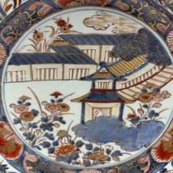 | Omschrijving | Een vroeg 18e eeuwse Japans porseleinen schotel, Edo periode. Met decor van kwartels tussen de bloemen en planten en een Oosters landschap op het plat. Ca 1700. |