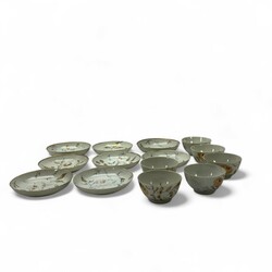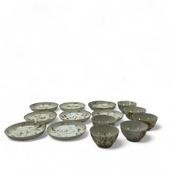 | Kavel | 61. Acht Qianlong Encre de Chine schotels met zes bijpassende koppen. |