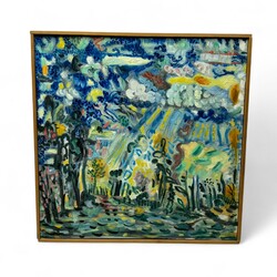 | Omschrijving | Schilderij, olieverf op doek. 'Muziekwedstrijd Pan vs Apollo', 'Allegro'. Verso gesigneerd Anne Feddema (Leeuwarden, 1961), gedateerd 2006. |