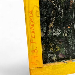 | Omschrijving | Schilderij, olieverf op paneel. 'Muziekwedstrijd Pan vs Apollo', VII. Verso gesigneerd Anne Feddema (Leeuwarden, 1961), gedateerd 2007. |