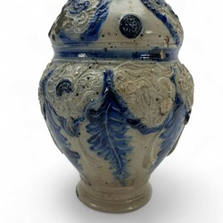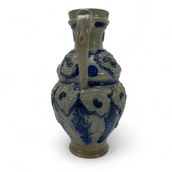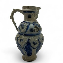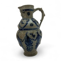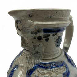 | Omschrijving | Een antieke geglazuurd aardewerken baardman schenkkan, Westerwald. 18e of 19e eeuws. |