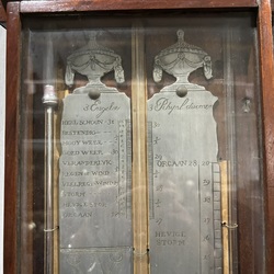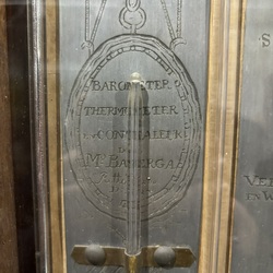 | Omschrijving | Een antieke mahoniehouten gefineerde bakbarometer, ca. 1800. Gesigneerd F. Bazerga Rotterdam. |