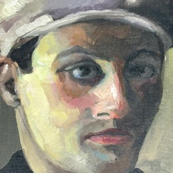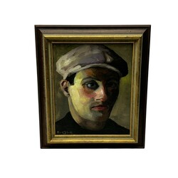 | Omschrijving | Schilderij, olieverf op doek, gemonteerd op board (marouflé). Zelfportret, 1933. Linksonder gesigneerd Bouke van der Sloot (Franeker 1908- Leeuwarden 1995). In bruine profiellijst. |