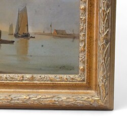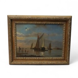 | Omschrijving | Schilderij, olieverf op paneel. Schepen op een rivier. Rechtsonder gesigneerd 'Brouwer', Hollandse School 19e eeuw. |