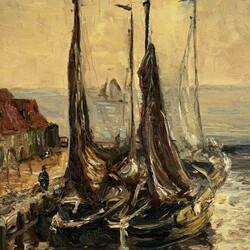 | Omschrijving | Schilderij, olieverf op doek. De haven van Volendam. Rechtsonder gesigneerd Carl August Breitenstein (Amsterdam 1864 - Velsen 1921). |