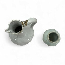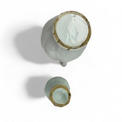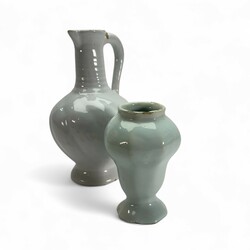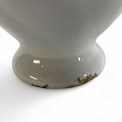 | Omschrijving | Lot van twee antieke 17 e eeuwse Delftse wit aardewerken objecten, een oorkan en een vaas. Conditie: oorkan zonder deksel, randchips. Vaas met randchips. |