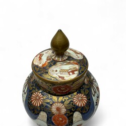 | Omschrijving | Drie vroeg 18e eeuwse Japans Imari porseleinen dekselvazen, Edo periode. Met decor van bloesemtakken, diverse planten, pioenrozen en hekwerk rondom. Ca 1700. |