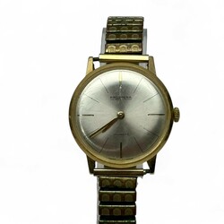 | Omschrijving | Een 14 krt (585/1000) gouden Zwitsers heren polshorloge aan onedele band. Merk Prospera. |