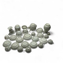| Kavel | 239. Een 22 delig 18e eeuws Chine de Commande porseleinen thee en koffie |