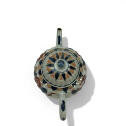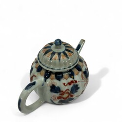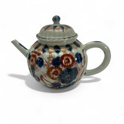 | Omschrijving | Een antiek Chinees porseleinen trekpotje uit de Kangxi periode. Pompoenvormig en gelobt model. Imari met een floraal decor. |
