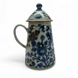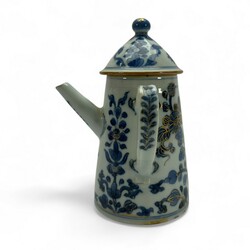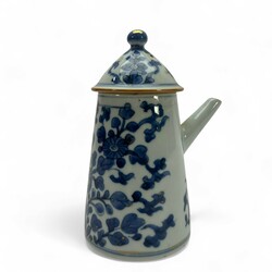 | Omschrijving | Een antiek Chinees porseleinen theepotje uit de Qianlong periode. Konisch model met originele deksel. Met een Blauw/wit floraal decor. |