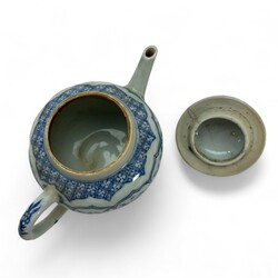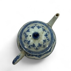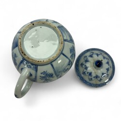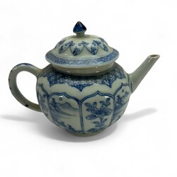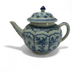 | Omschrijving | Een antiek Chinees porseleinen theepotje uit de Qianlong periode. Bol vormig en gelobt model deksel. Met een Blauw/wit floraal en landschap decor in cartouches. |