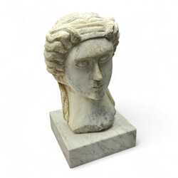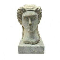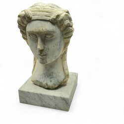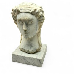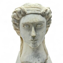 | Kavel | 27. Een uit marmer gebeeldhouwd buste van een vrouw naar de Griekse oudheid. |