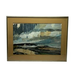 | Omschrijving | Gemengde techniek op papier, landschap. Rechtsonder gesigneerd Fedde de Jong (Sneek 1915 - Amsterdam 1977) |
