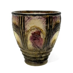 | Omschrijving | Een Paté de Verre persglazen ART DECO vaas. Met twee opgehoogde versieringen van een vogel en een steigernd paard. gesigneerd Gabriel Argy Rouseau. (1885-1953). ca 1925. |