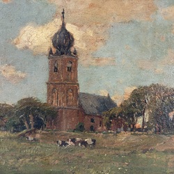 | Omschrijving | Schilderij, olieverf op doek. Gezicht op Deinum, met koeien op de voorgrond. Rechtsonder gesigneerd Gerbrand Frederik van Schagen (Den Haag 1880 – Laren 1968). |